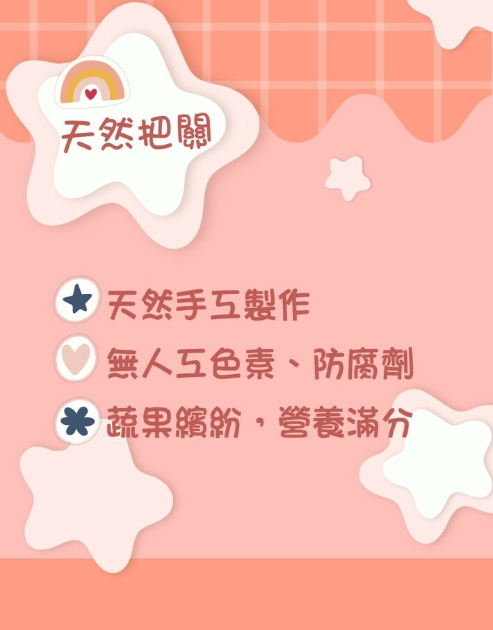 ✎ 我們堅持成分單純:蔬果、小麥麵粉、鹽、水和少量健康海藻醣