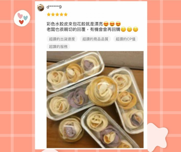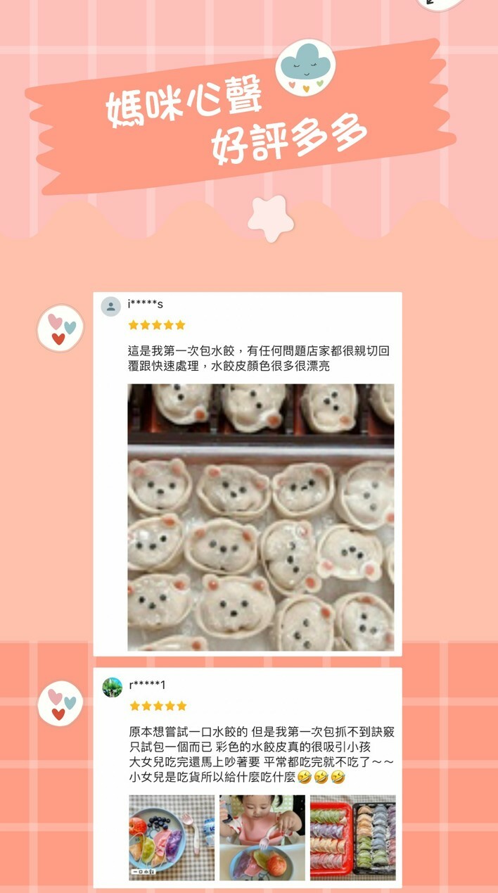 專門給寶寶的特薄水餃皮來囉!小小餃子適合小小寶寶,繽紛色彩寶寶每一顆都想吃,讓媽媽把全部的愛包進去♥